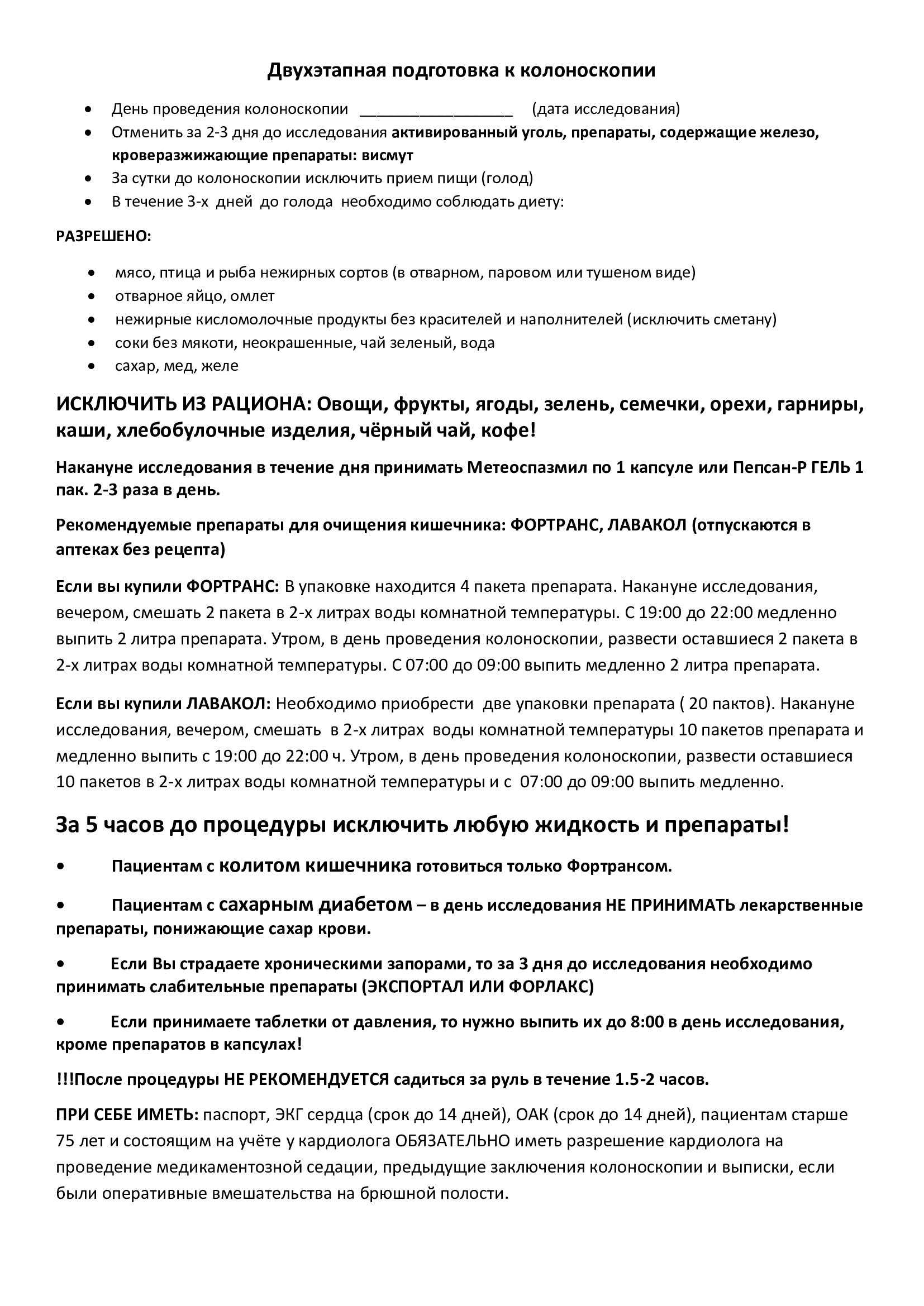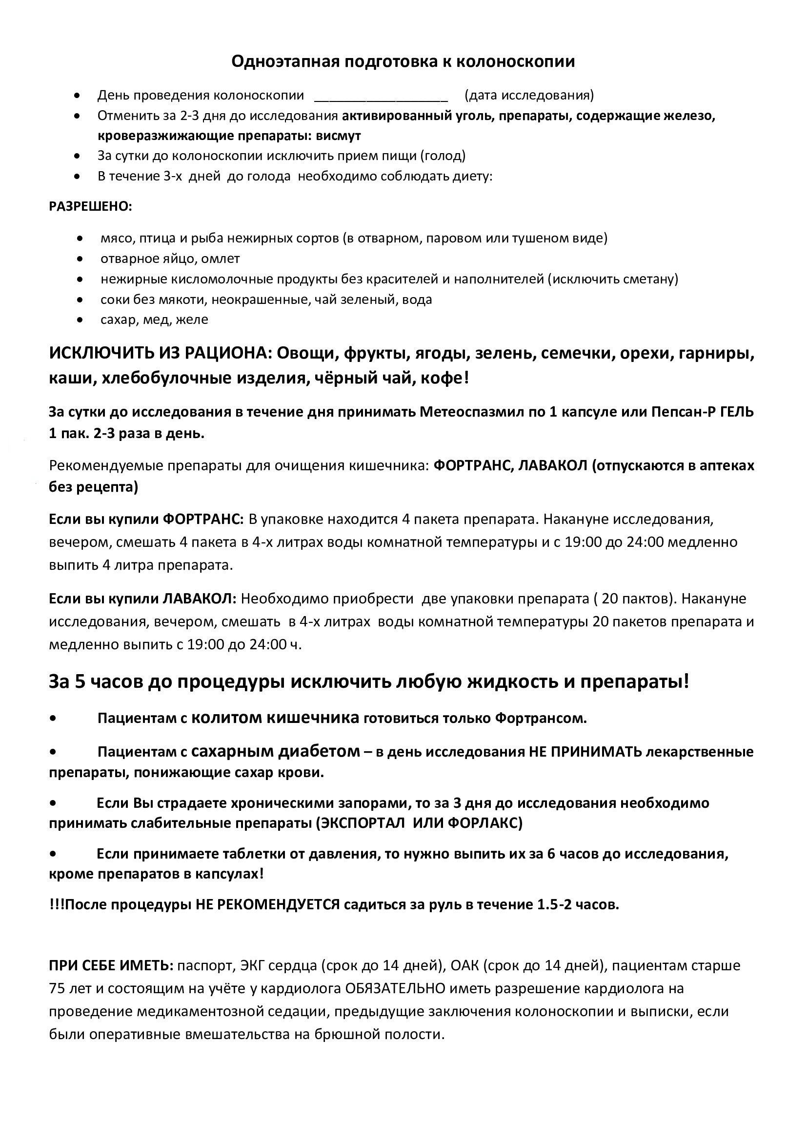 Уважаемые пациенты! Если вы записаны на колоноскопию на выходной день, то эта подготовка для Вас